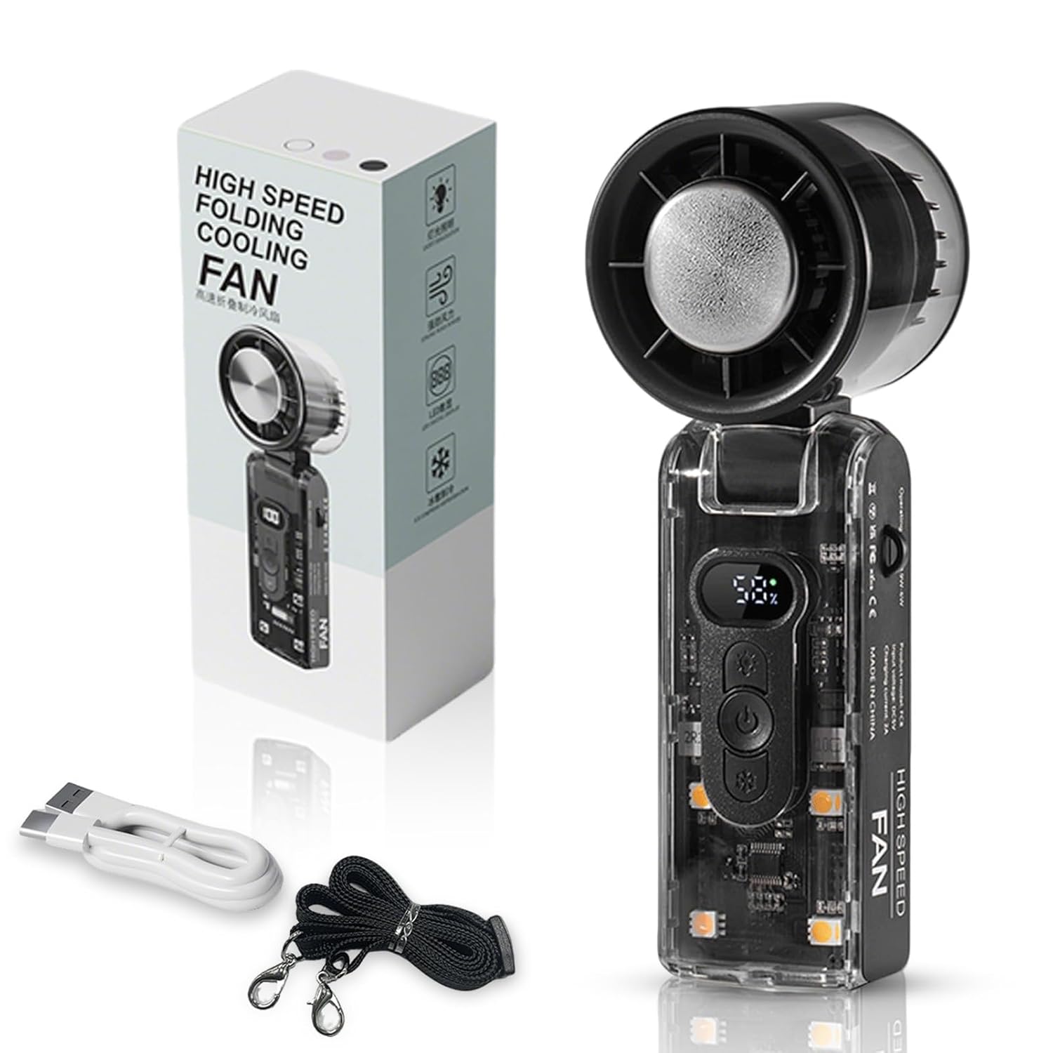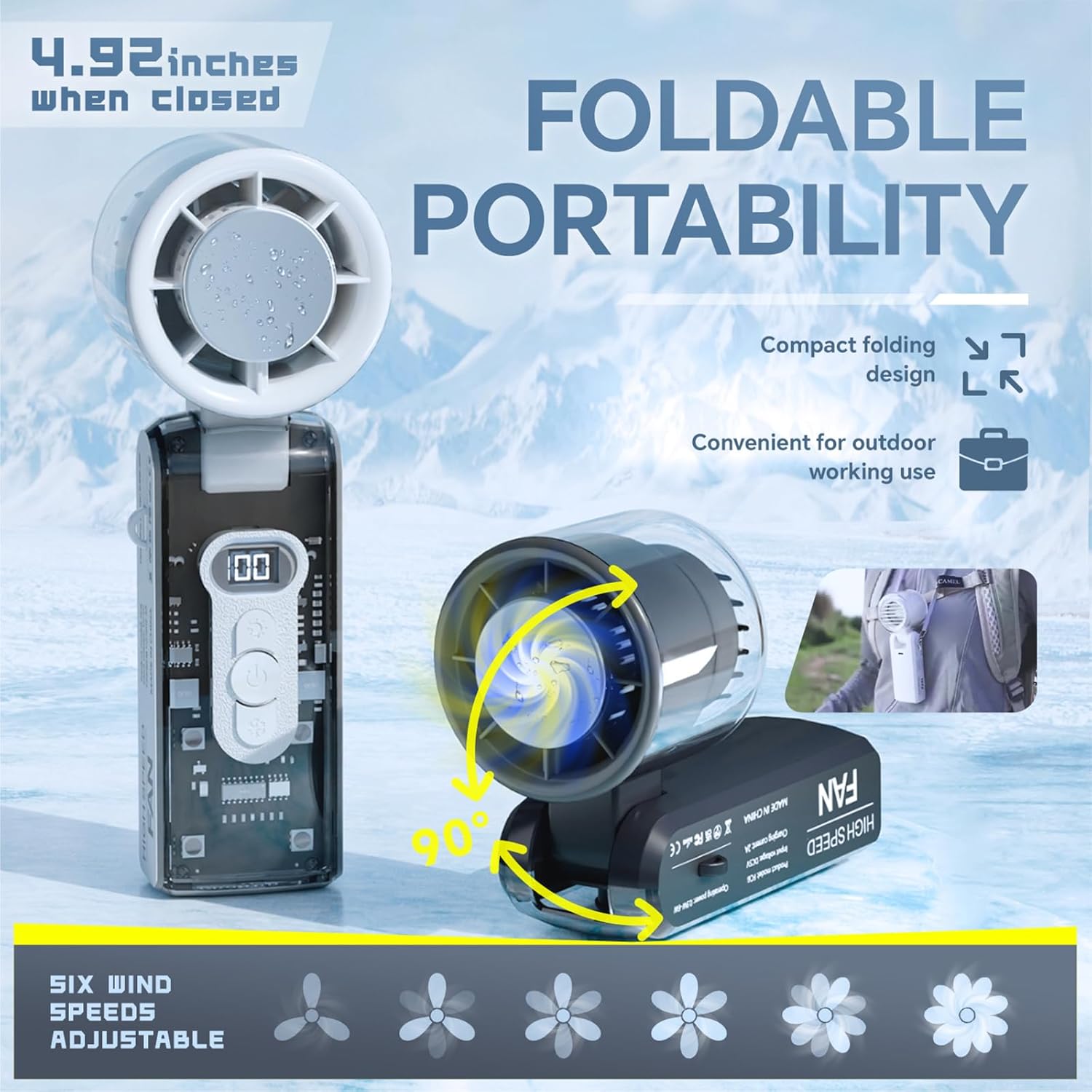 - Foldable fan with instant Ice cooling plate, 100 speeds, and LED light.